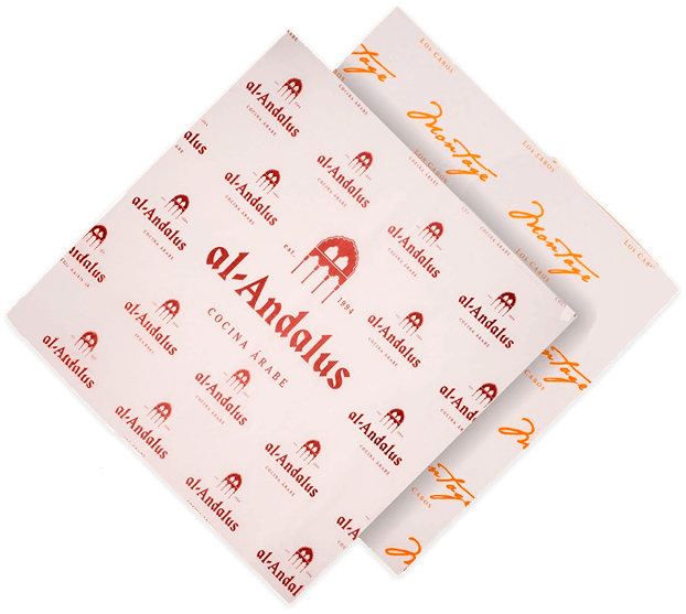 Ideal para panaderías, cafeterías y restaurantes. Papel impreso con tintas seguras para contacto directo con alimentos.